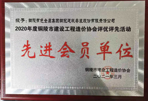 銅陵市造價協(xié)會先進(jìn)會員單位