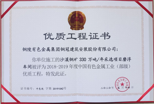 銅陵市2020年優(yōu)良工程(銅陵有色銅冶煉...